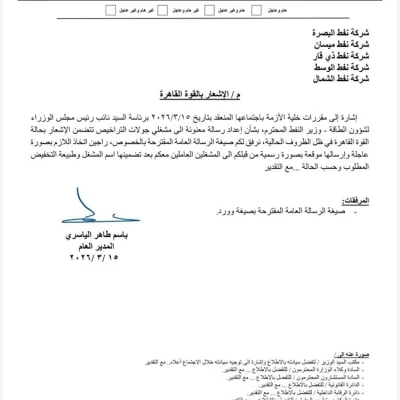 وزارة النفط تعلن إشعار حالة القوة القاهرة لمشغلي جولات التراخيص