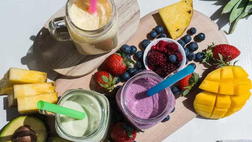 يمكن أن يكون مخفوق الحليب والمانجو أو “سموثي” الموز لذيذًا، لكن مزج الفاكهة مع الحليب ربما يُبطئ عملية الهضم. وتتحلل الفاكهة بسرعة بينما يستغرق الحليب وقتًا أطول، مما يمكن أن يُسبب التخمر والانتفاخ. ومن الأفضل الاستمتاع بالفاكهة وحدها أو مع بعض المكسرات.