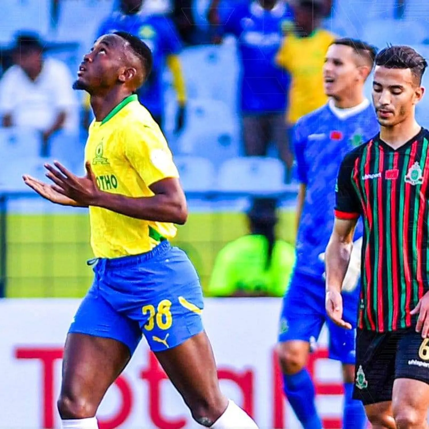 على ملعب «لوفتوس فيرسفيلد»، افتتح بيتر شالالولي التسجيل لأصحاب الأرض مستغلاً خطأ في التغطية الدفاعية من لاعبي الجيش الملكي مترجماً أفضلية صنداونز على المجريات (34).