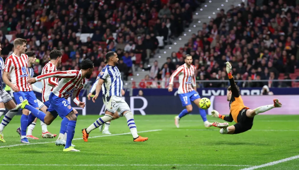 وكانت المواجهة بين أتلتيكو مدريد وريال سوسييداد بروفة لقمتهما المرتقبة في المباراة النهائية لمسابقة كأس الملك في 18 نيسان/أبريل المقبل في إشبيلية.
