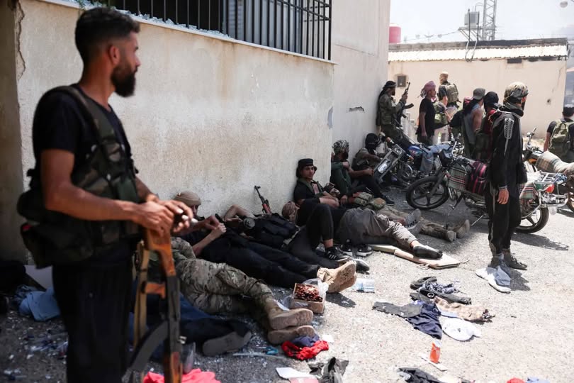 مقاتلون من البدو والقبائل العربية في مدينة السويداء اليوم السبت (أ.ف.ب)