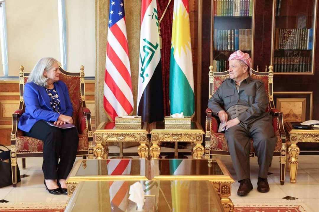 اجتماع السفيرة الأميركية في العراق إلينا رومانوسكي مع رئيس الحزب الديمقراطي مسعود بارزاني (موقع رئيس الحزب)