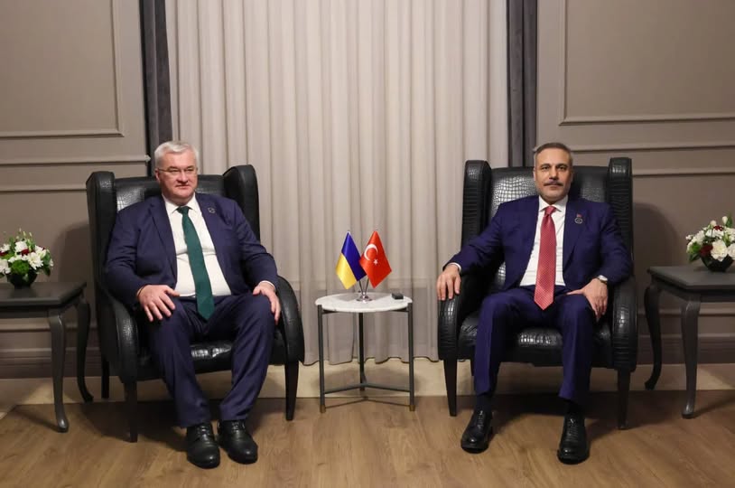 جانب من لقاء وزيري الخارجية التركي هاكان فيدان والأوكراني أندريه سيبيها على هامش «منتدى أنطاليا الدبلوماسي» السبت (الخارجية التركية)