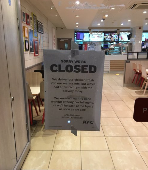 وذكر ممثل الشركة أن عملية توريد لحوم الدجاج لـ900 مطعم في بريطانيا صارت مشوبة بالتعقيد مما اضطرها إلى إغلاق بعض مطاعمها أو خفض ساعات العمل فيها.