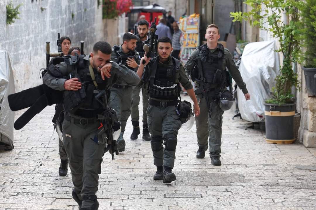 عناصر من الشرطة الإسرائيلية بمكان حادث الطعن في القدس (رويترز)