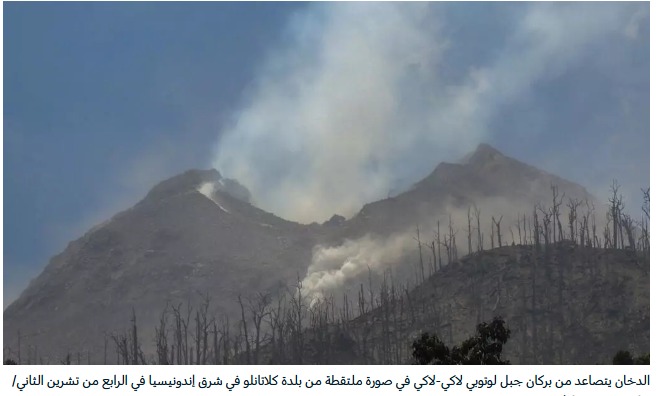 الدخان يتصاعد من بركان جبل لوتوبي لاكي-لاكي في صورة ملتقطة من بلدة كلاتانلو في شرق إندونيسيا في الرابع من تشرين الثاني/نوفمبر 2024
