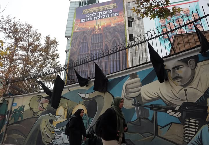 إيرانيتان تمران بجانب لوحة دعائية مناهِضة لإسرائيل تحمل عبارة: «نحن مستعدون… هل أنتم مستعدون؟» معلقة في ساحة وسط طهران (إ.ب.أ)
