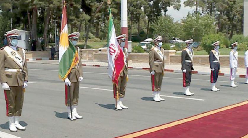 رفع علم كردستان خلال مراسم استقبال رئيس الإقليم نيجيرفان بارزاني في مطار طهران الخميس الماضي (موقع رووداو)بغداد: فاضل النشمي