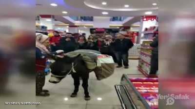 وأظهر مقطع فيديو نشرته صحيفة “يني شفق”، رجلا في محافظة نيدا جنوبي البلاد، وهو يحتج بإدخال حماره إلى محل تجاري لشراء أغراضه.