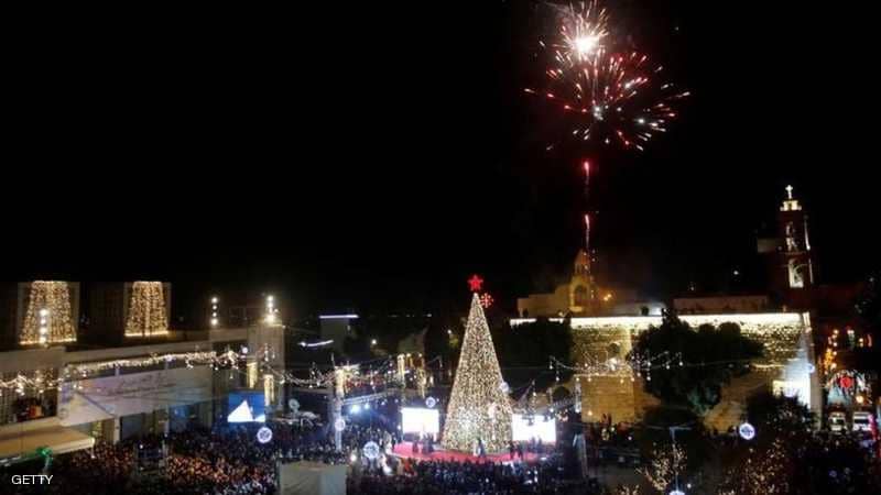 واصطفت طوابير الزوار إلى جانب شجرة لعيد الميلاد يبلغ ارتفاعها 16 مترا في ساحة كنيسة المهد لدخول الكنيسة التي شيدت قبل قرون ويؤمن المسيحيون بأن مكانها شهد ميلاد المسيح.