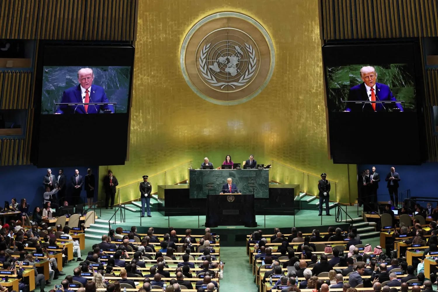 الرئيس الأميركي دونالد ترمب خلال كلمة أمام الجمعية العامة للأمم المتحدة في مقر الأمم المتحدة بنيويورك يوم 23 سبتمبر (أ.ف.ب)
