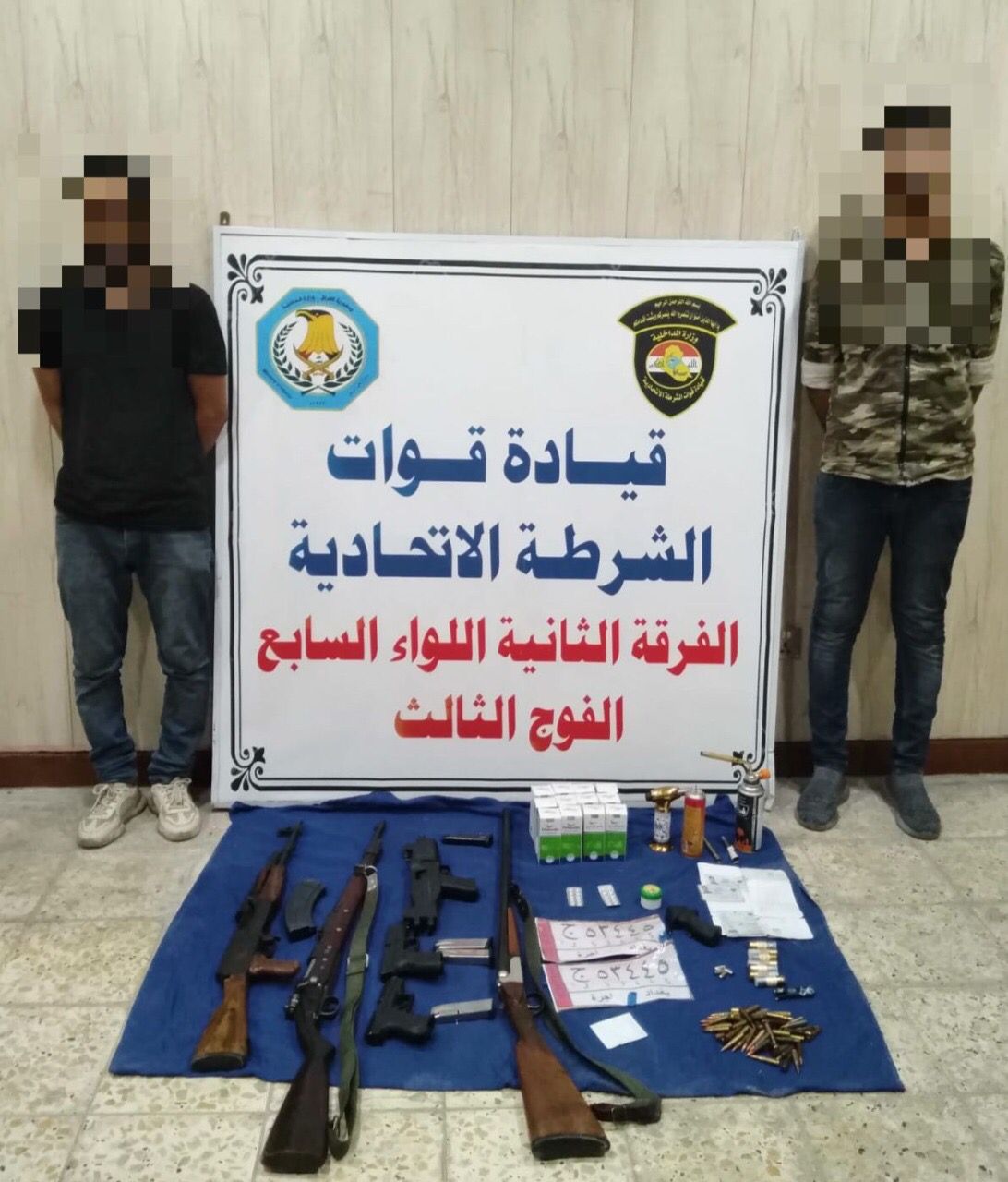 وذكرت الخلية، في بيان تلقت /موازين نيوز/ نسخة منه، أن “ضمن الهدف المنشود لقيادة عمليات بغداد بمحاربة ظاهرة السلاح المنفلت، تمكنت قوة من اللواء السابع شرطة اتحادية وبالتنسيق مع استخبارات عمليات بغداد ووكالة الاستخبارات والتحقيقات الاتحادية من القبض على متهمين اثنين يستقلان سيارة مدنية، ضبط بحوزتهم (سلاح غدارة ٩ ملم، ومسدس نوع HS، ومسدس ٩ ملم، وبندقية كلاشنكوف، وبندقية برنو، وبندقية صيد، واطلاقات عتاد مختلفة”.