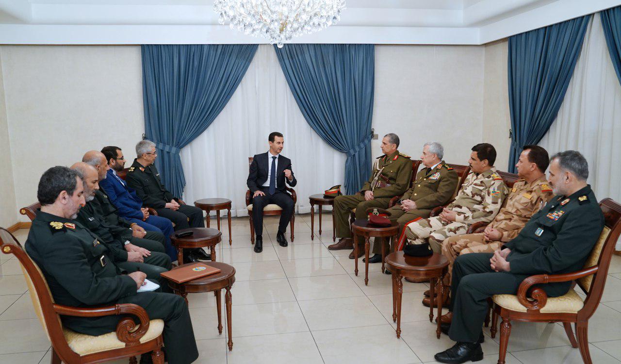 اجتمع الرئيس السوري بشار الأسد مع وفد عسكري عراقي وإيراني، وبحثوا سبل تعزيز التنسيق بين البلدان الثلاث بالجانب العملياتي لمكافحة الإرهاب.