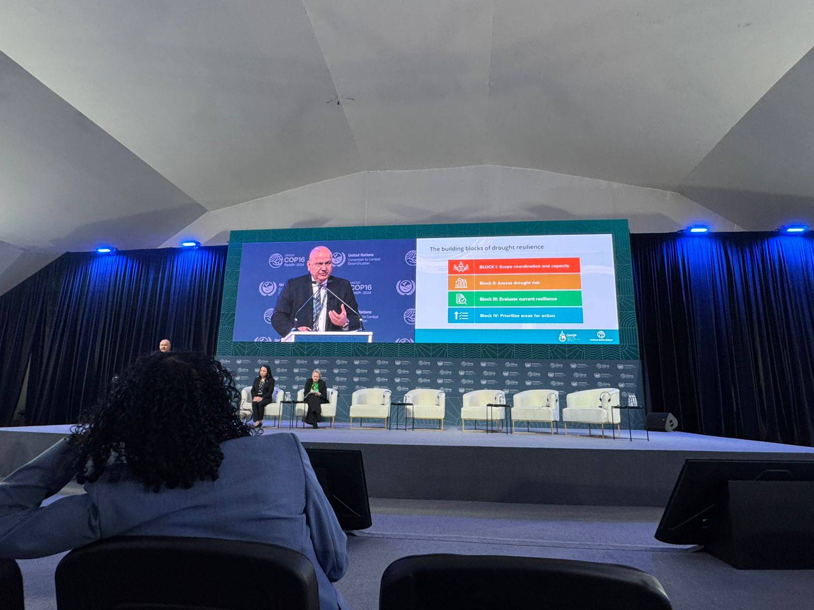 وأضاف أن الجفاف في بعض المناطق زاد بنسبة تصل إلى 230 في المائة في السنوات الخمسين الماضية، وأن تأثير تغير المناخ يعزز من تفاقم هذه الظاهرة. وتوقَّع أن يكون للجفاف بحلول عام 2050، تأثير كبير على نصف سكان العالم. ولهذا السبب، شدد على ضرورة استباق الجفاف من خلال استراتيجيات فعّالة لمواجهته، وهو ما لم يتم تنفيذه بشكل كافٍ حتى الآن.