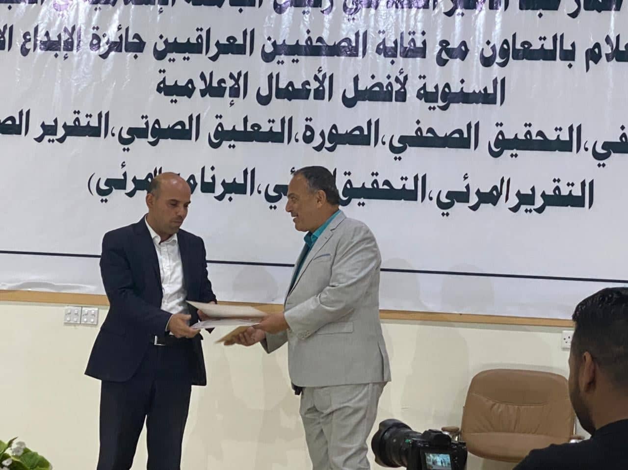 حصل الكاتب والصحفي محمد حمزة الجبوري أحد أبرز كتاب وصحفيي العراق على المركز الأول في مسابقة الإبداع الإعلامي التي نظمتها كلية الإعلام في الجامعة الإسلامية في النجف الأشرف لأفضل تقرير خبري بمشاركة عدد كبير من الكتاب والإعلاميين من مختلف أنحاء البلاد .