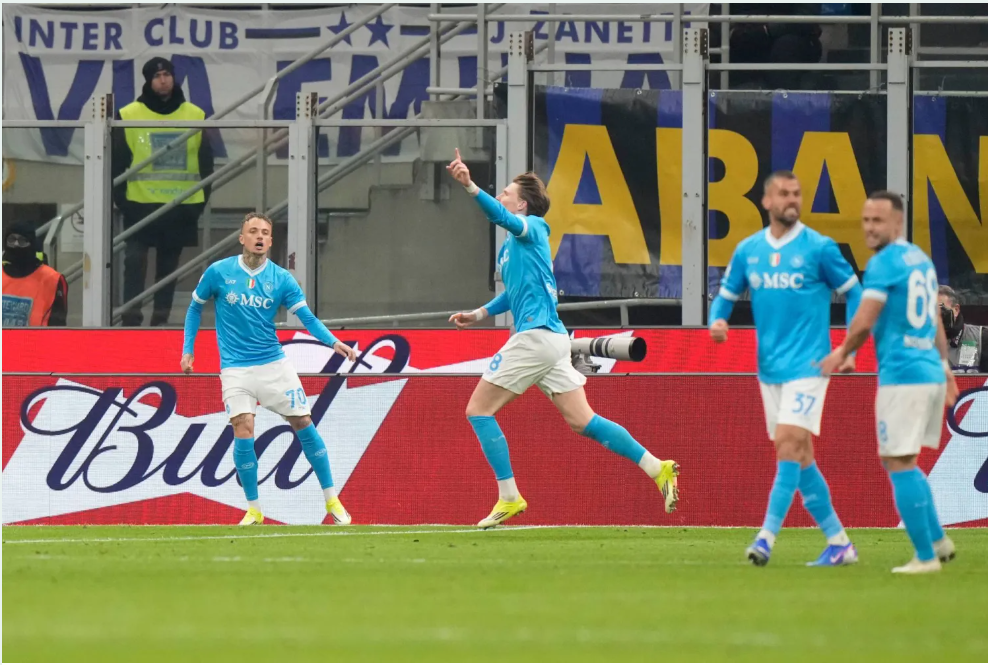 وتقدم إنتر ميلان في الدقيقة التاسعة عن طريق فيدريكو ديماركو، ثم أدرك ماكتوميناي، أفضل لاعب في الدوري الإيطالي الموسم الماضي، التعادل لنابولي في الدقيقة 26.