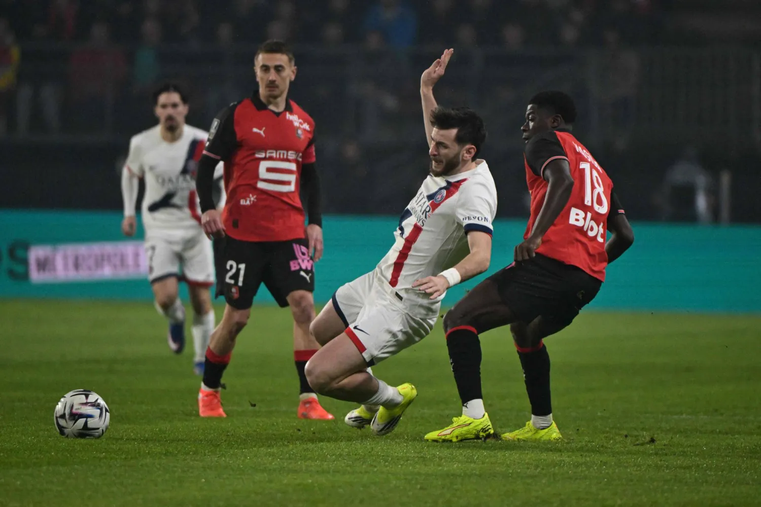 وسجّل الأردني موسى التعمري (34) وإيستيبان لوبول (69) والبديل السويسري بريل إمبولو (81) ثلاثية رين مقابل هدف من عثمان ديمبيليه (72).