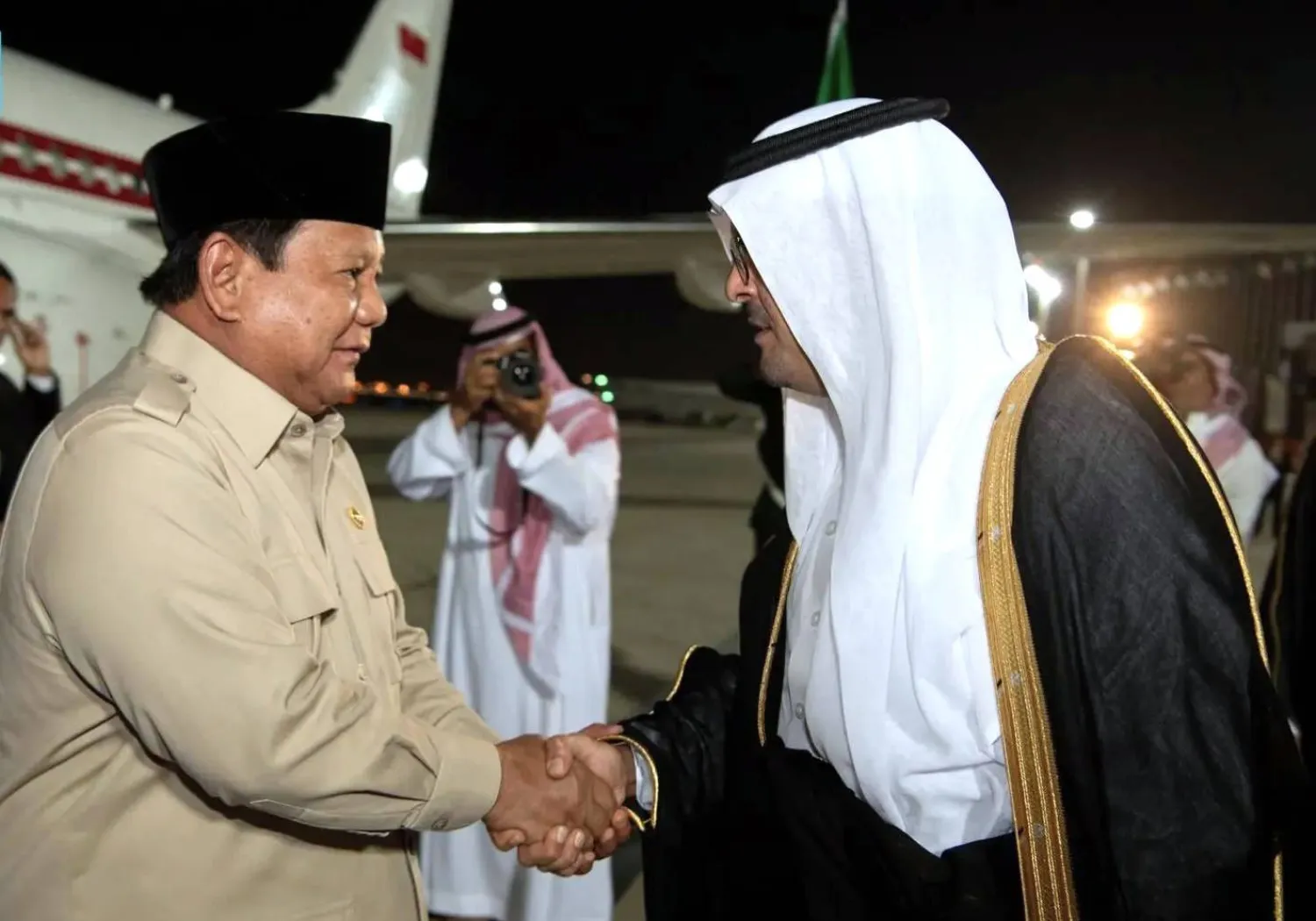 وصل الرئيس الإندونيسي برابوو سوبيانتو، إلى جدة، الثلاثاء، في زيارة دولة للسعودية، حيث استقبله بمطار الملك عبد العزيز الدولي، الأمير سعود بن مشعل نائب أمير منطقة مكة المكرمة.