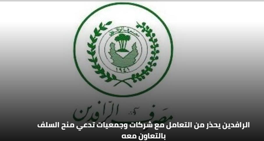 حذر مصرف الرافدين، اليوم السبت، موظفي دوائر الدولة والمتقاعدين من التعامل مع بعض الشركات والجمعيات الاستهلاكية ومنافذ البطاقة الذكية الذين يمارسون الاحتيال بادعائهم منح السلف وبالتعاون مع المصرف .