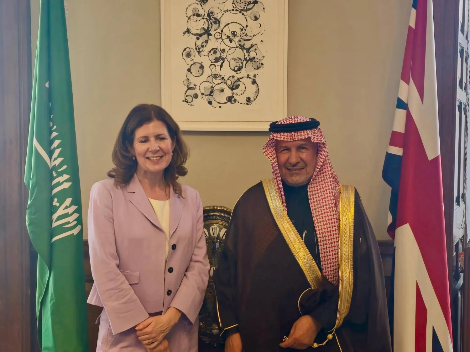 وأشادت الوزيرة البريطانية بجهود السعودية لمساعدة الدول والشعوب المحتاجة والمتضررة في مختلف أنحاء العالم.