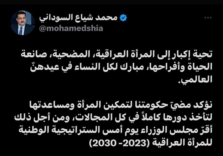 السوداني يؤكد مضي الحكومة لتمكين المرأة ومساعدتها