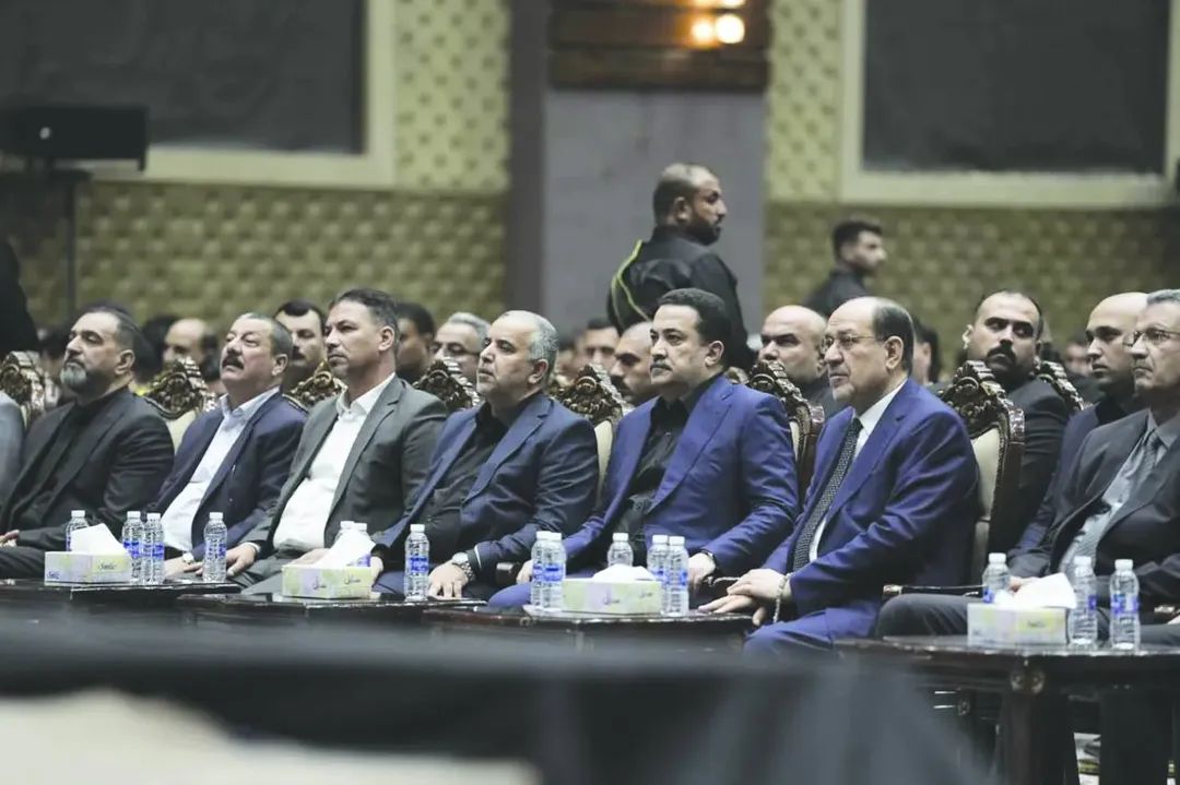 رئيس الوزراء العراقي محمد شياع السوداني بجانب نوري المالكي خلال مناسبة دينية سابقة في بغداد (أرشيفية – إعلام حكومي)