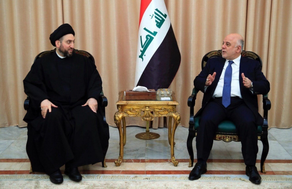 بحث رئيس تحالف الإصلاح والاعمار السيد عمار الحكيم مع رئيس ائتلاف النصر حيدر العبادي استكمال الكابينة الوزارية ودعم البرنامج الحكومي.
