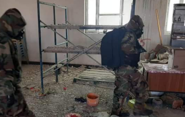 وبينت ان المختبر كان يحتوي على ومحاليل مختبرية كيميائية، وبعد الفحص الدقيق الذي أجري باستخدام أجهزة (افتيار ورامان) تبين أن هذه المادة هي عنصر الفسفور.