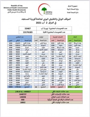الصحة تسجل 12734 اصابة جديدة بفيروس كوروناديدة بفيروس كورونا