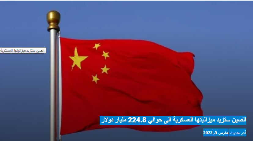 المستقلة/- ستزيد الصين ميزانيتها العسكرية بنسبة 7.2٪ في عام 2023 إلى 1553.7 مليار يوان (حوالي 224.8 مليار دولار بأسعار الصرف اليوم)، وفقا لمسودة الميزانية الصادرة يوم الأحد.