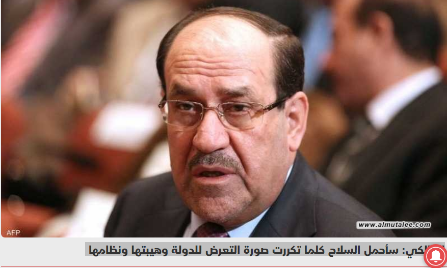 المالكي: سأحمل السلاح كلما تكررت صورة التعرض للدولة وهيبتها ونظامها