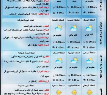 وحددت المديرية، وفقاً للمتحدّث، السرعات المسموح بها في حال وجود السحب أو انخفاض مدى الرؤية، حيث “لا يجب أن تتجاوز سرعة المركبات 40 كيلومتراً في الساعة، مع التأكيد على ضرورة تأجيل السفر على الطرق الخارجية في حال سوء الأحوال الجوية، وتقليل التنقل إلا في الحالات الضرورية”.
