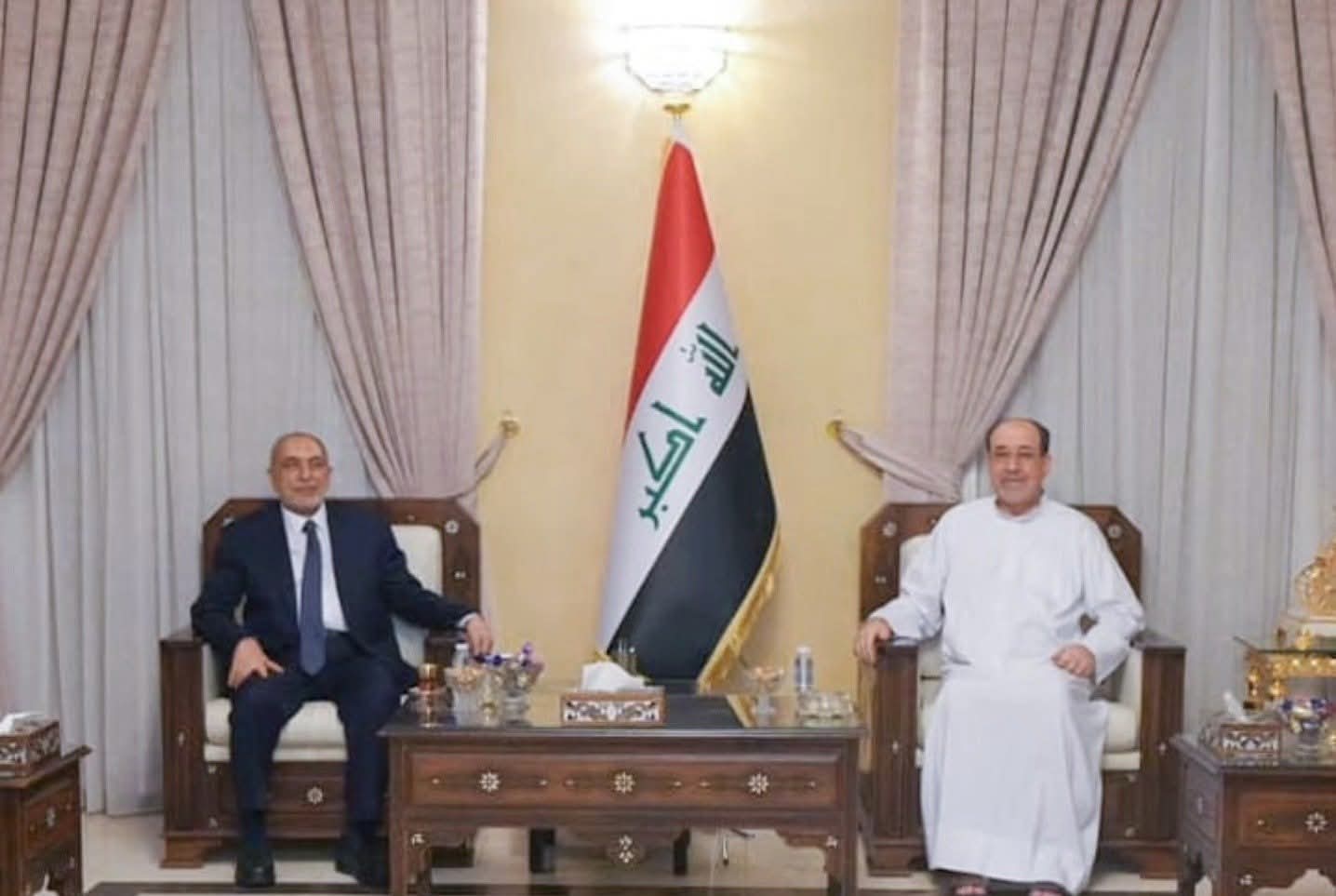 وذكر المكتب الاعلامي لمجلس النواب في بيان، أن “رئيس مجلس النوّاب الدكتور محمود المشهدانيّ، زار اليوم الأربعاء، رئيس حزب الدعوة الإسلامية نوري المالكيّ؛ بغية الاطمئنان على صحته؛ وذلك بعد الوعكة الصحية التي تعرّض لها المالكيّ مؤخرًا، مثنيًا على دوره الوطنيّ والسياسيّ، ومتمنيًا له الشفاء العاجل. ”