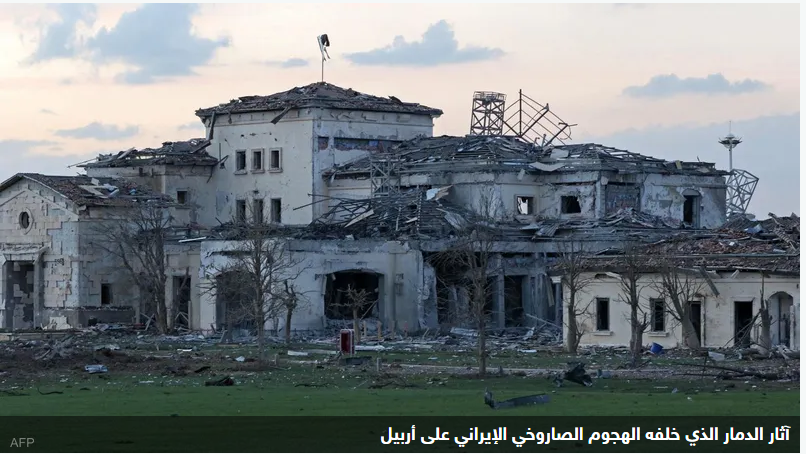 آثار الدمار الذي خلفه الهجوم الصاروخي الإيراني على أربيل