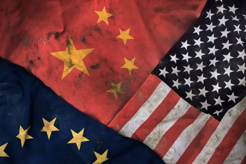 أعلام الولايات المتحدة والاتحاد الأوروبي والصينصدر الصورة،Getty Images
