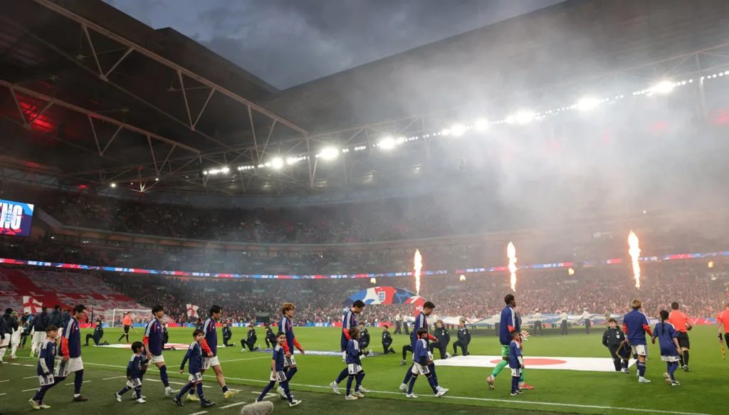 فازت اليابان على مضيفتها إنكلترا 1-0 الثلاثاء في غياب الهداف التاريخي هاري كاين بعد تعرضه “لمشكلة بسيطة أثناء التدريب”، على ملعب “ويمبلي” الشهير في مباراة منتخب “الأسود الثلاثة” الأخيرة على أرضه قبل كأس العالم 2026.