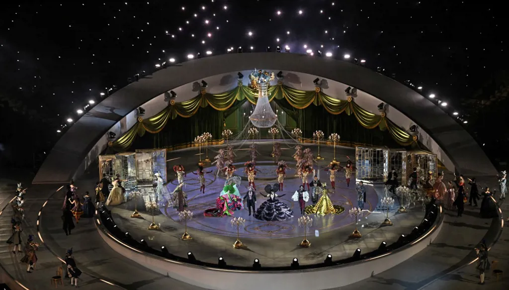وجُهزت ساحة المدرّج بمنصة رئيسة محاطة بستار أخضر ضخم وثريات عملاقة، لتسليط الضوء على غنى الثقافة الإيطالية، وثقافة فيرونا ومناطق ميلانو-كورتينا 2026، ووعد المنظمون بـ”عرض تصبح فيه إيطاليا بأسرها مسرحاً”.