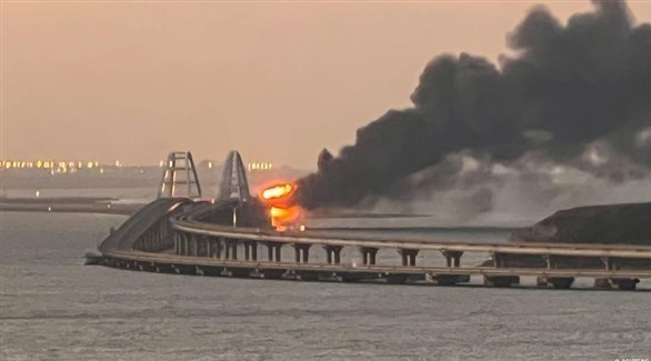 ونتج الحريق الذي اندلع على جسر القرم عن انفجار شاحنة مفخخة، وفق ما نقلت وكالات الأنباء الروسية عن اللجنة الوطنية الروسية لمكافحة الإرهاب مشيرة إلى تضرر الطرقات على الجسر.
