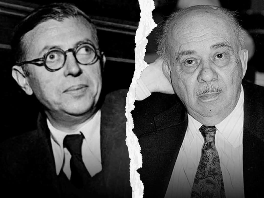 جان بول سارتر (إلى اليسار) وسهيل إدريس