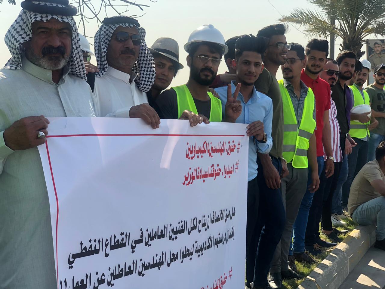 بالصور.. خريجو كلية الهندسة كيمياوي يتظاهرون امام وزارة النفط ويهددون باعتصام مفتوح