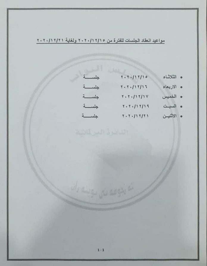 بالوثيقة .. البرلمان يحدد مواعيد انعقاد جلساته للفترة المقبلة