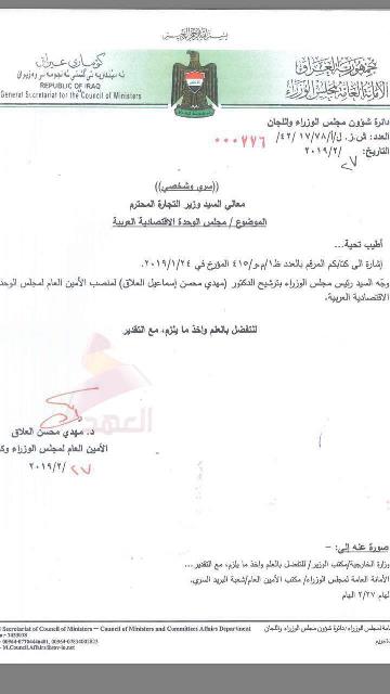 بالوثيقة.. ترشيح الدكتور مهدي محسن لمنصب الامين العام لمجلس الوحدة الاقتصادية العربية