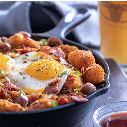 قوموا بتقطيع البطاطس وسلقها ومن ثم هرسها جيداً مع إضافة التوابل، أي البابريكا والملح والفلفل الأسود.• قوموا بقلي البطاطس أو وضعها في الفرن، حسب الرغبة.• وفي مقلاة، قوموا بوضع ملعقة زيت زيتون مع قطع الفطر الصغيرة والفلفل الأحمر الرومي الصغير، إلى جانب البصل الأحمر المقطّع إلى شرائح. واتركوها على نارٍ خفيفة إلى حين نضوجها.• قوموا بتحضير البيض كعيون أو بالطريقة المعتادة.• بعد نضوج كل المكونات، ضعوا البطاطس مع الخضراوات والفطر وفوقها البيض في طبقٍ واحد، مع إضافة الملح والفلفل الأسود عليها.