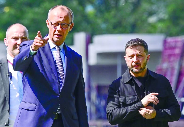 الرئيس الأوكراني زيلينسكي مع المستشار الألماني ميرتس (أ.ف.ب)