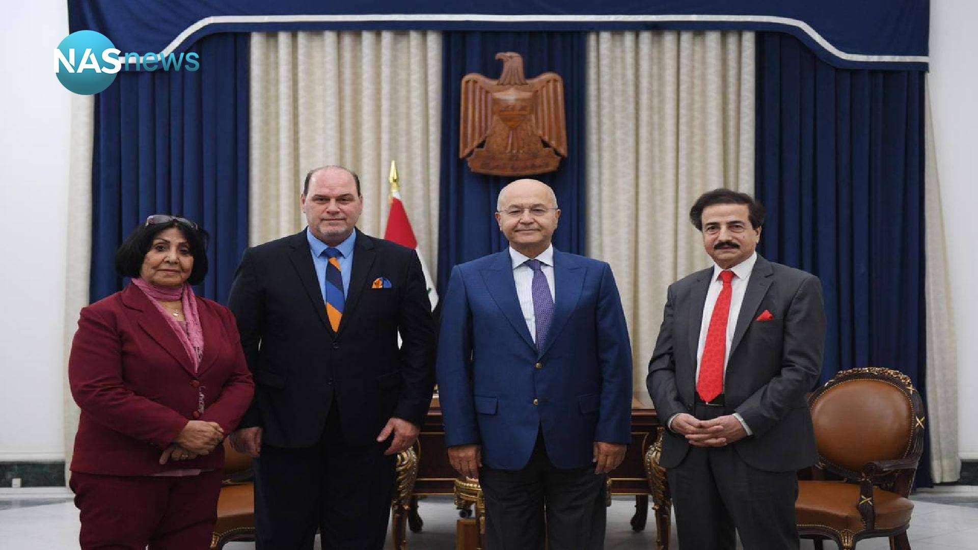 بحث رئيس الجمهورية برهم صالح، الأحد، العمل لدفع عجلة الثقافة في البلد في مختلف الاختصاصات الفنية، خلال استقباله نخبة من الفنانين العراقيين ونقيب الفنانين العراقيين جبار جودي.
