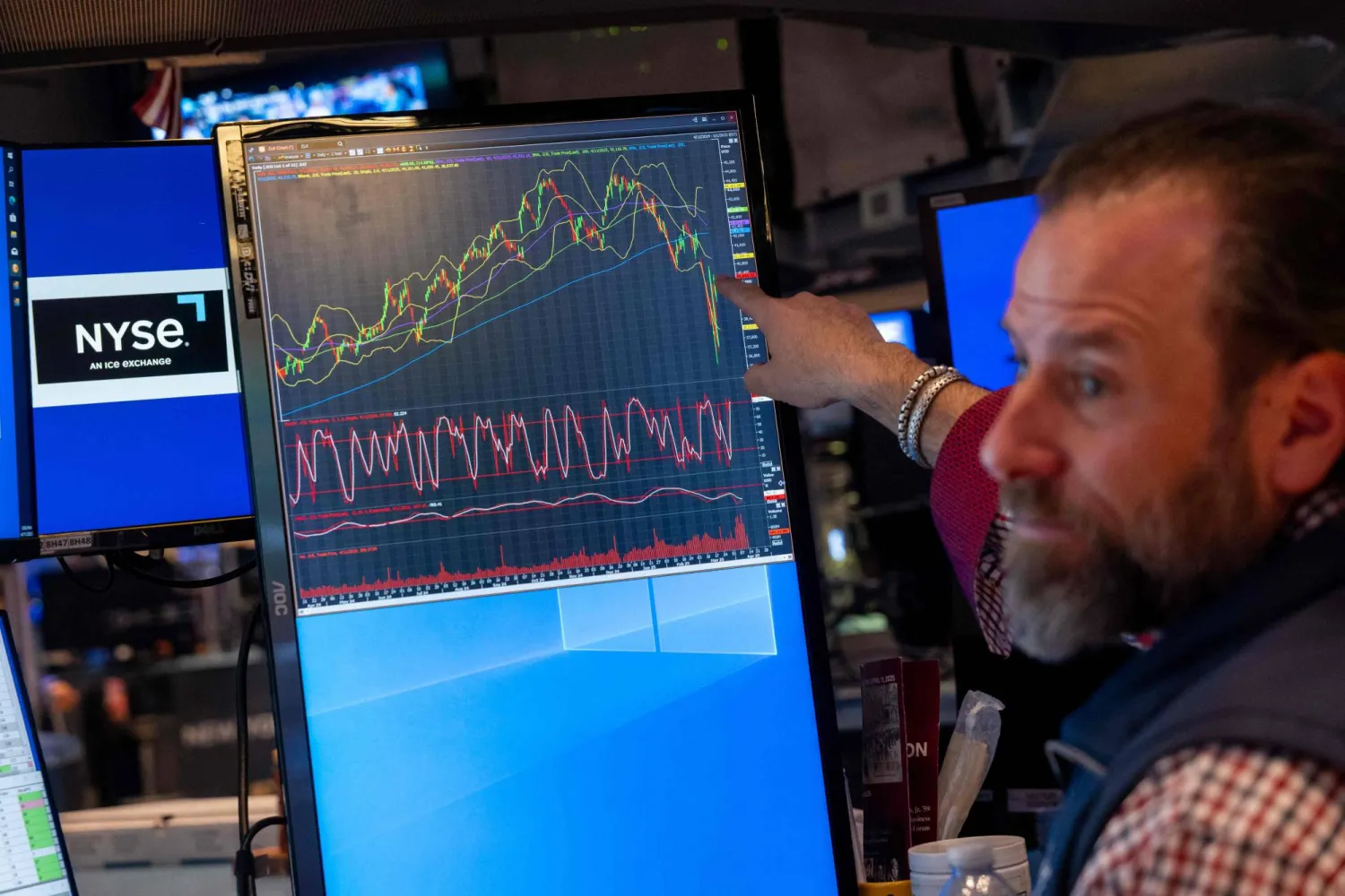 وبلغ مؤشر «Cboe» للتقلبات، وهو مقياس يستند إلى الخيارات لقياس قلق المستثمرين، نحو 40، أي أكثر من ضعف متوسط مستواه التاريخي.