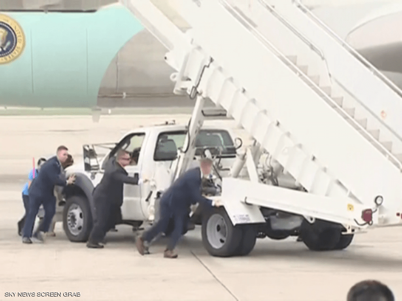يبدو أن متاعب الرئيس الأميركي دونالد ترامب، لم تقف عند فشل قمته مع زعيم كوريا الشمالية، كيم جونغ أون، فحينما أراد العودة إلى واشنطن، يوم الخميس، تعطلت السيارة التي تقوم بنقل السلم إلى الطائرة الرئاسية.