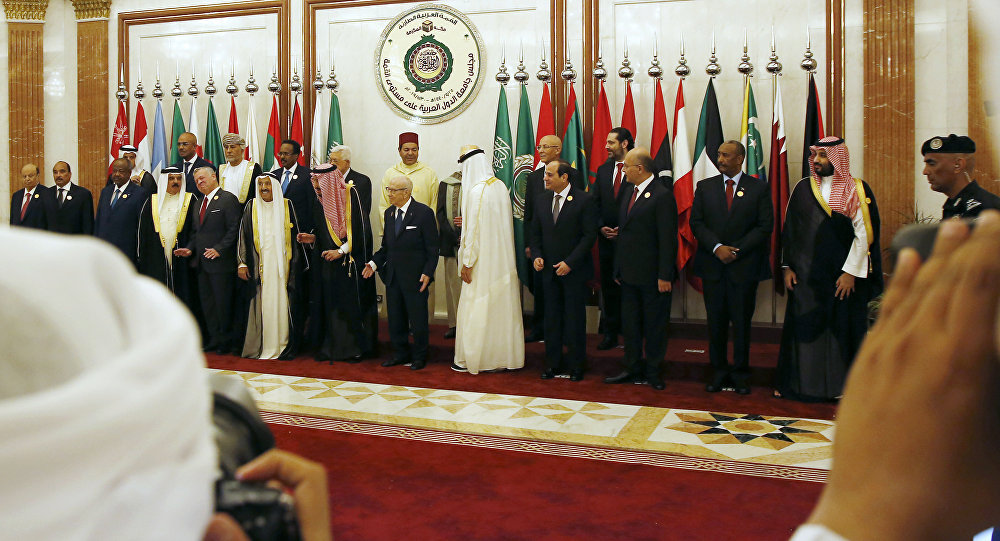 الأمين العام لجامعة الدول العربية أحمد أبو الغيط والعاهل السعودي سلمان بن عبد العزيز ووزير الخارجية السعودي إبراهيم العساف يحضران القمة العربية الـ 30 في العاصمة تونس، تونس 31 مارس/ آذار 2019
