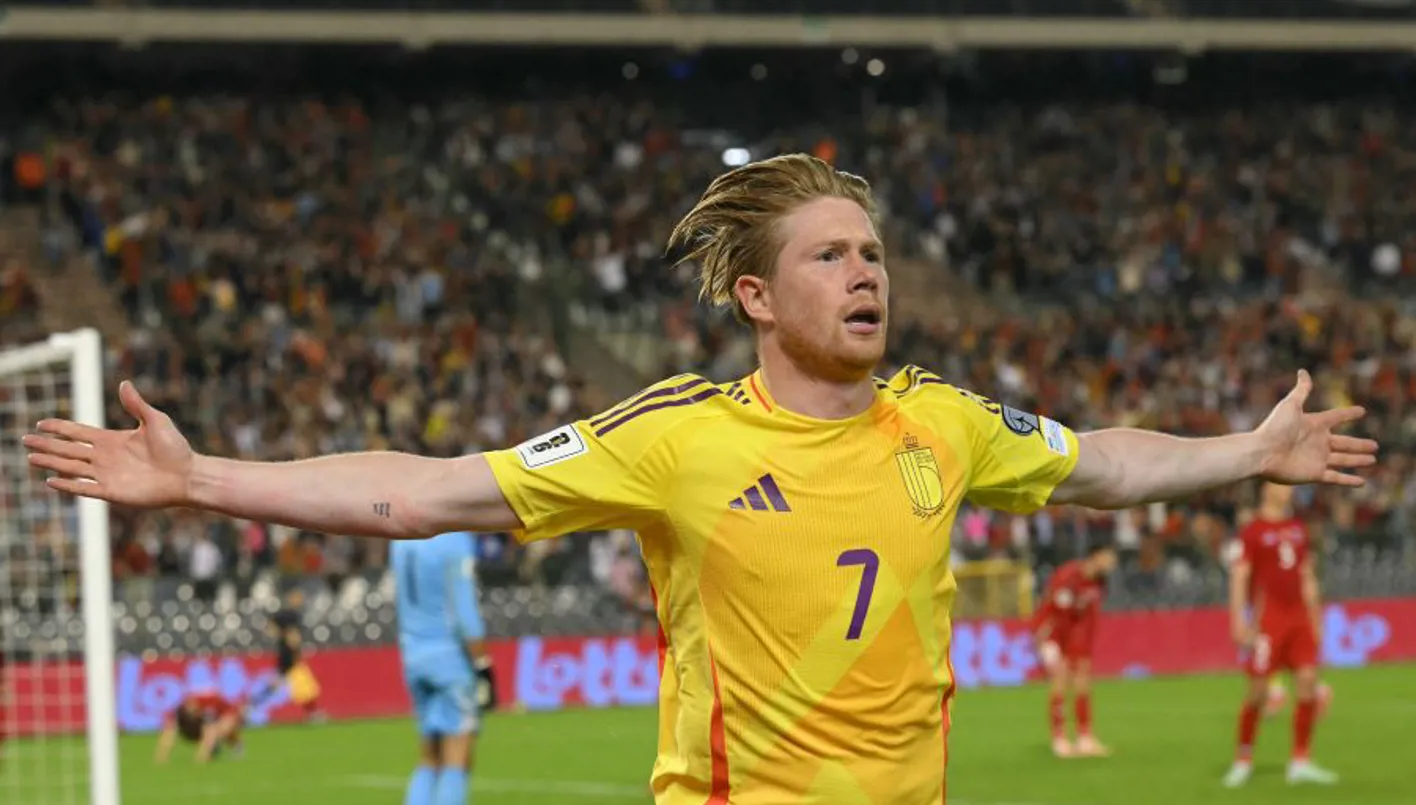 أخمد صانع الألعاب البلجيكي كيفن دي بروين ريمونتادا ويلز ومنح بلاده فوزاً قاتلاً هو الأول له في التصفيات الأوروبية المؤهلة لنهائيات كأس العالم في كرة القدم 2026 بنتيجة 4-3 الإثنين في مباراة جنونية ضمن منافسات الجولة الرابعة للمجموعة العاشرة، وقدّم خدمة لمقدونيا الشمالية التي انتزعت الصدارة بفوزها الصعب على مضيفتها كازاخستان 1-0.