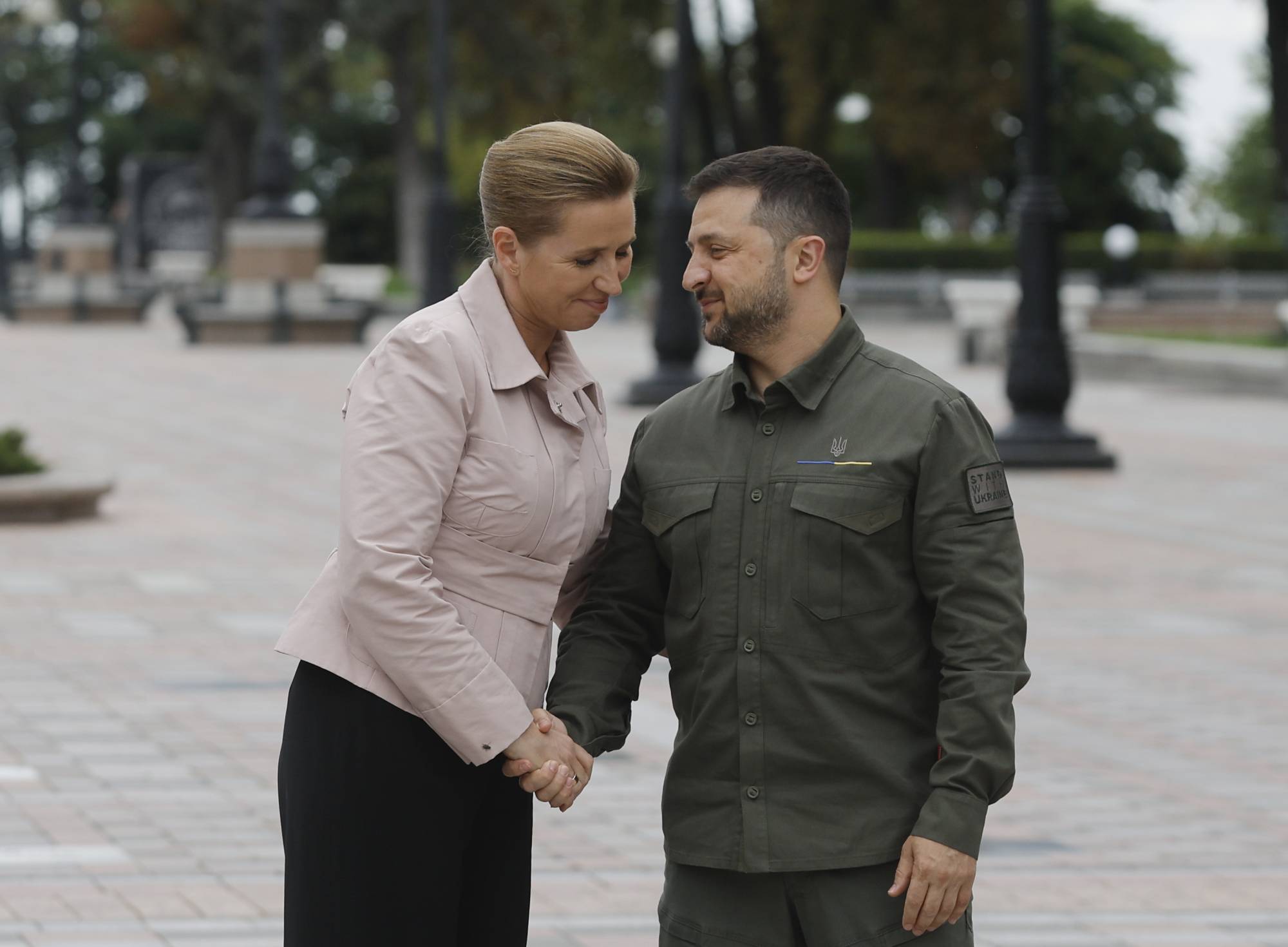 زيلينسكي مع رئيسة وزراء الدنمارك مته فريدريكسن (إ.ب.أ)